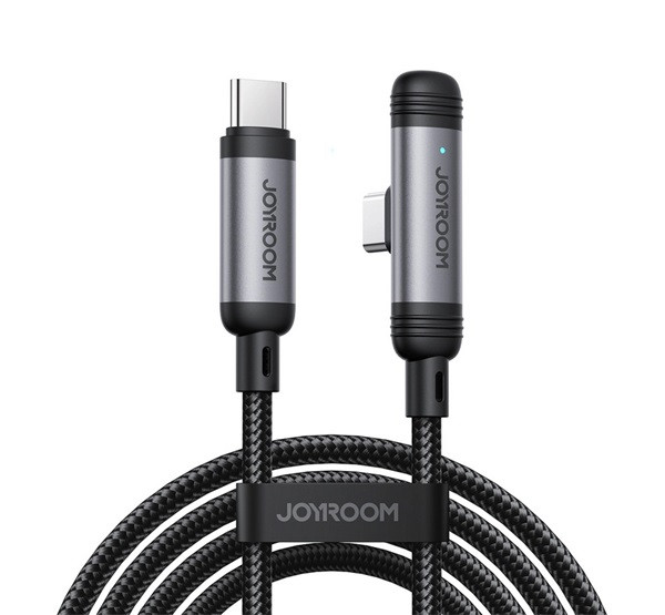 JOYROOM S-A56 ENJOYX SERIES adatkábel (Type-C - Type-C, 60W, gyorstöltő, 90 fokos, cipőfűző, 120cm) FEKETE