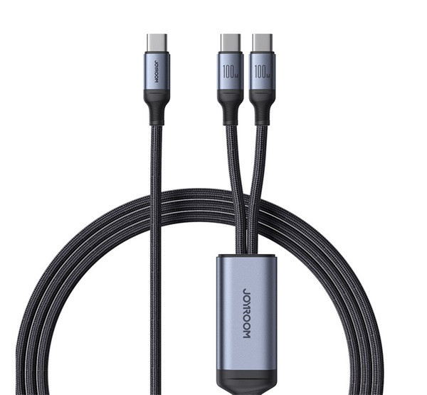 JOYROOM adatkábel 2in1 (Type-C - Type-C/Type-C, 100W, gyorstöltő, cipőfűző, 150cm) FEKETE