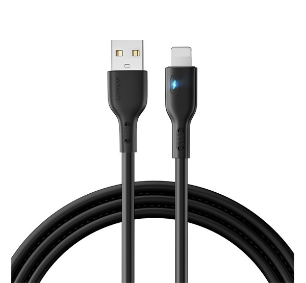 JOYROOM adatkábel (USB - lightning, 2.4A, LED jelzés, 200cm) FEKETE