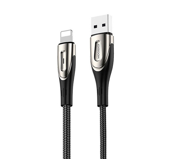 JOYROOM adatkábel (USB - lightning, 3A, gyorstöltő, LED jelzés, 120cm) FEKETE