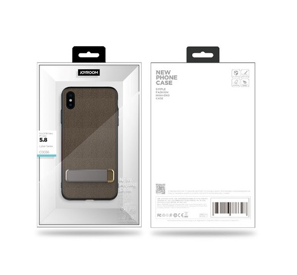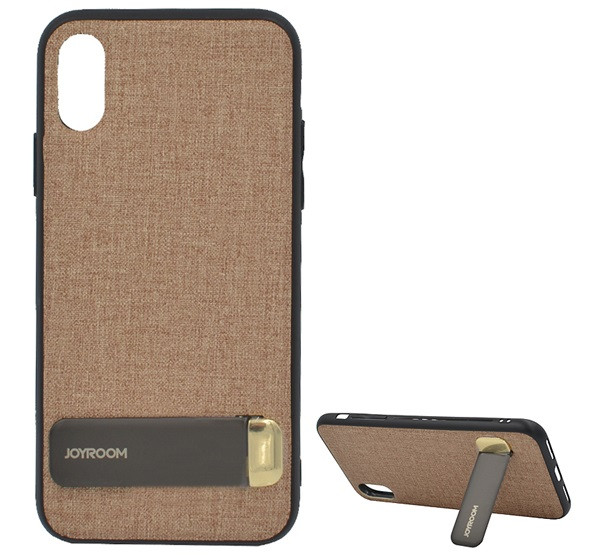 JOYROOM szilikon telefonvédő (textil bevonat, kitámasztó) BARNA