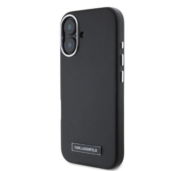 KARL LAGERFELD FW METAL PLATE MAGSAFE szilikon telefonvédő (ütésállóság, ECO bőr hatású hátlap, MagSafe) FEKETE