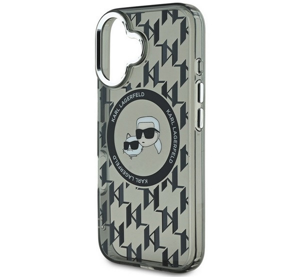 Ez az elegáns tok a teljes felületén elhelyezett „KL” monogrammal hívja fel a figyelmet, amely rendkívül designer hatást kölcsönöz neki. A tok kialakítását alumínium betétek gazdagítják a kamera körüli kereten és az oldalsó gomboknál. A kollekciót kiegészíti egy nyomat, amely a legendás divattervezőt szeretett macskája, Choupette társaságában ábrázolja, és amely a mágneses gyűrű közepén helyezkedik el.