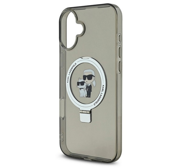 KARL LAGERFELD RINGSTAND KARL AND CHOUPETTE MAGSAFE szilikon telefonvédő (ütésállóság, MagSafe, kitámasztó) FEKETE