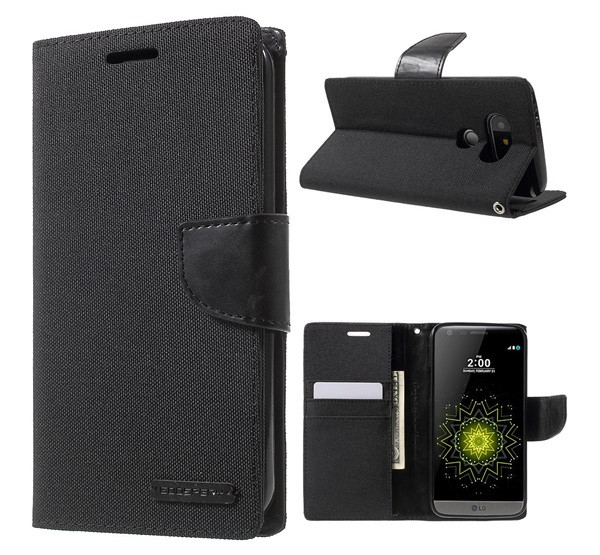 MERCURY Canvas Diary tok álló (FLIP, oldalra nyíló, asztali tartó, textil hatás) FEKETE