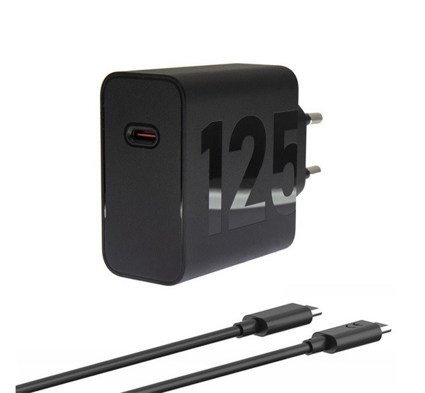 MOTOROLA TURBOPOWER hálózati töltő Type-C aljzat (125W, GaN, PD gyorstöltő + Type-C kábel) FEKETE