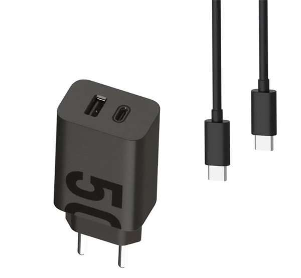 MOTOROLA TURBOPOWER hálózati töltő USB+Type-C aljzat (50W, PD gyorstöltő + Type-C kábel) FEKETE