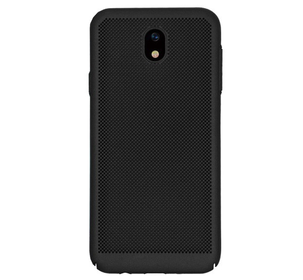 Műanyag telefonvédő (gumírozott, lyukacsos) FEKETE