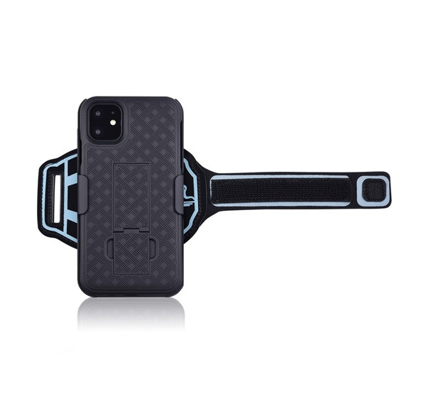 Műanyag telefonvédő (ütésállóság, karpánt, zseb, csíkos, SPORT) FEKETE