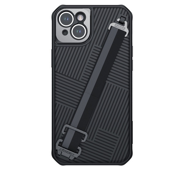 NILLKIN STRAP műanyag telefonvédő (ütésállóság, fém kameravédő, csíkos + kézpánt) FEKETE