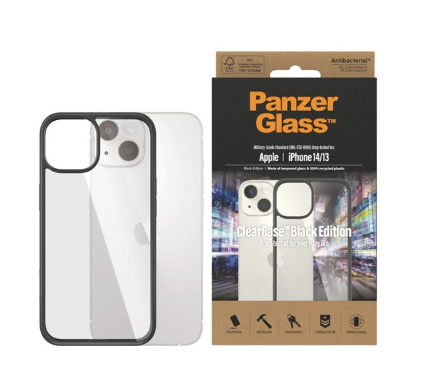 PANZERGLASS CLEARCASE szilikon telefonvédő (ütésállóság, üveg hátlap, antibakteriális) FEKETE