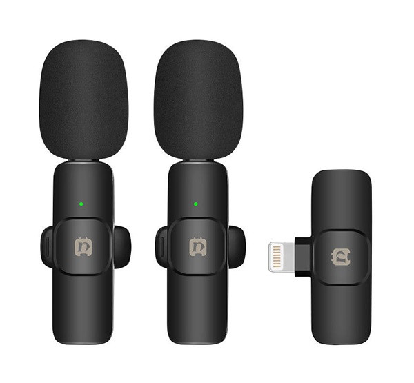 PULUZ bluetooth mikrofon 2db (lightning, LAVALIER csíptethető, zajszűrő + töltőtok) FEKETE