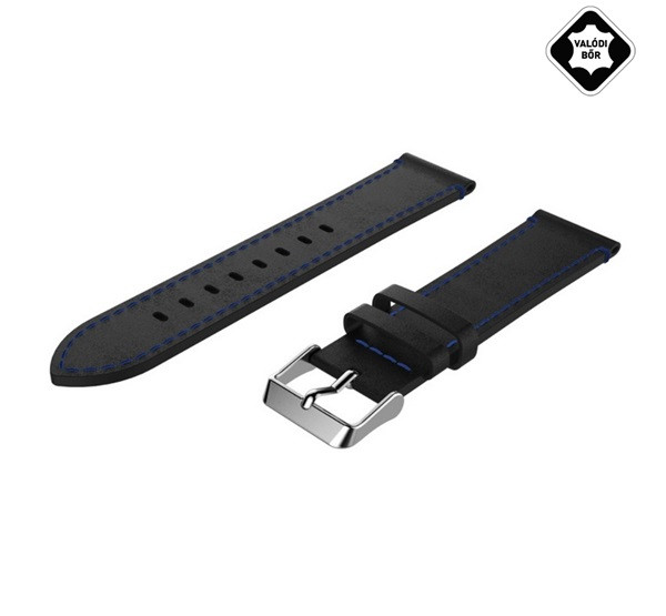 Pótszíj (univerzális, 20mm, valódi bőr, levarrt szél) FEKETE