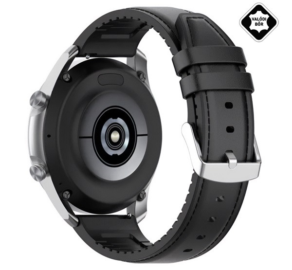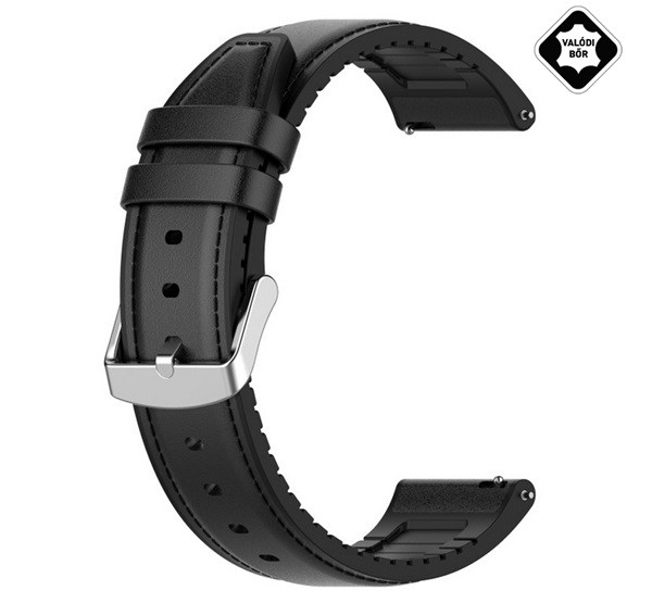 Pótszíj (univerzális, 22mm, valódi bőr, szilikon belső) FEKETE