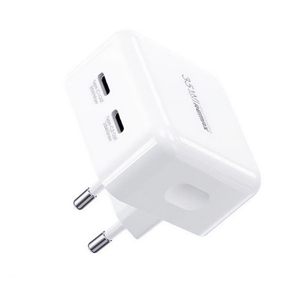 REMAX FIYEO hálózati töltő 2 Type-C aljzat (35W, PD gyorstöltő) FEHÉR