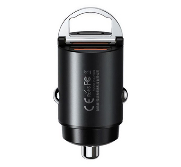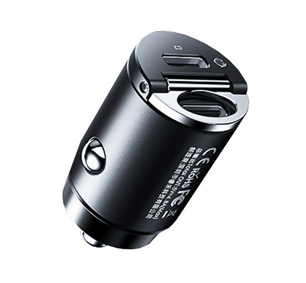 REMAX MINI autós töltő USB+Type-C aljzat (30W, PD gyorstöltő) FEKETE