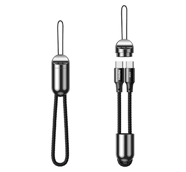 REMAX RAYTHON adatkábel (Type-C - Type-C, 65W, PD gyorstöltő, védőtok, 120cm) FEKETE