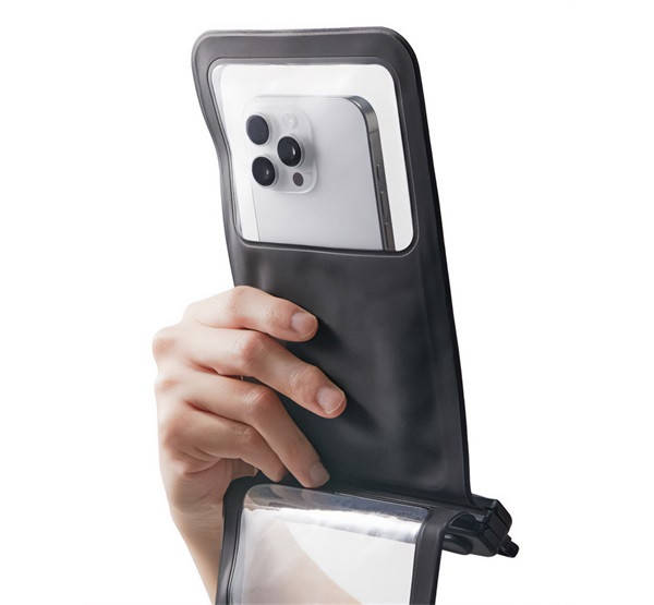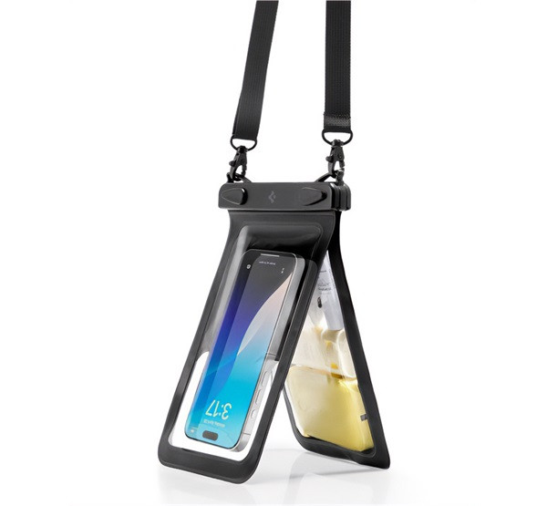 SPIGEN A603 vízhatlan/vízálló tok, AQUA (univerzális, IPX8, nyakba akasztható, 2 zseb, 6.8" méret) FEKETE