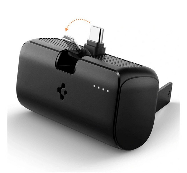 SPIGEN EA2205 vésztöltő Type-C aljzat (5000mAh, 22.5W, PD gyorstöltő, LED jelzés, Type-C csatlakozó, kitámasztó) FEKETE