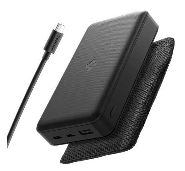 SPIGEN EA3020 vésztöltő USB+2 Type-C aljzat (20000mAh, 30W, PD gyorstöltő, LED jelzés + Type-C kábel) FEKETE