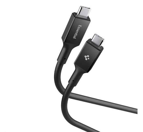 SPIGEN ESSENTIAL EB10020CC adatkábel (Type-C - Type-C, 100W, PD gyorstöltő, 200cm) FEKETE