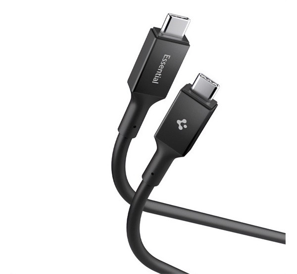 SPIGEN ESSENTIAL EB24012CC adatkábel (Type-C - Type-C, 240W, PD gyorstöltő, 120cm) FEKETE