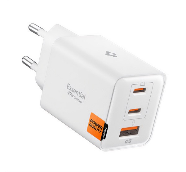 SPIGEN ESSENTIAL EE473EU hálózati töltő USB+2 Type-C aljzat (47W, PD gyorstöltő 3.0) FEHÉR