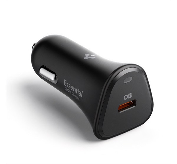 SPIGEN ESSENTIAL autós töltő Type-C aljzat (30W, PD gyorstöltő 3.0) FEKETE