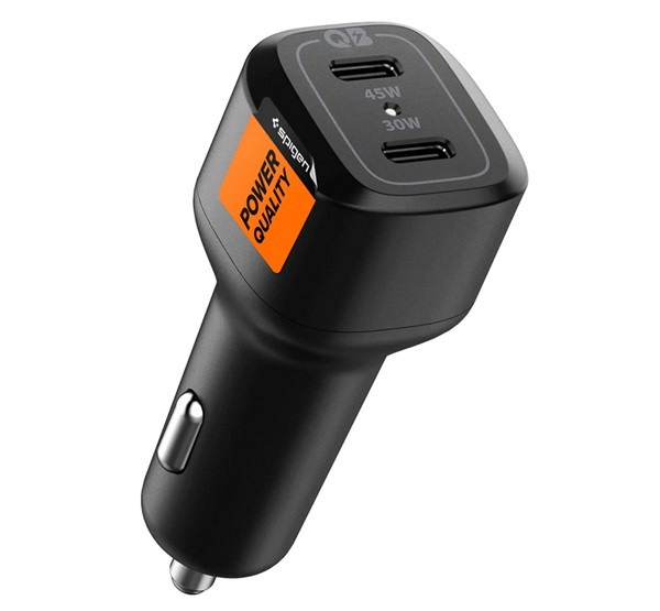 SPIGEN PC2200 ARCSTATION autós töltő 2 Type-C aljzat (45W + 30W, PD gyorstöltő 3.0) FEKETE