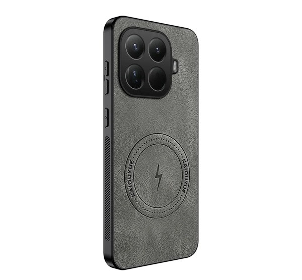Szilikon telefonvédő (nappa bőr hátlap, légpárnás sarok, MagSafe) SÖTÉTSZÜRKE