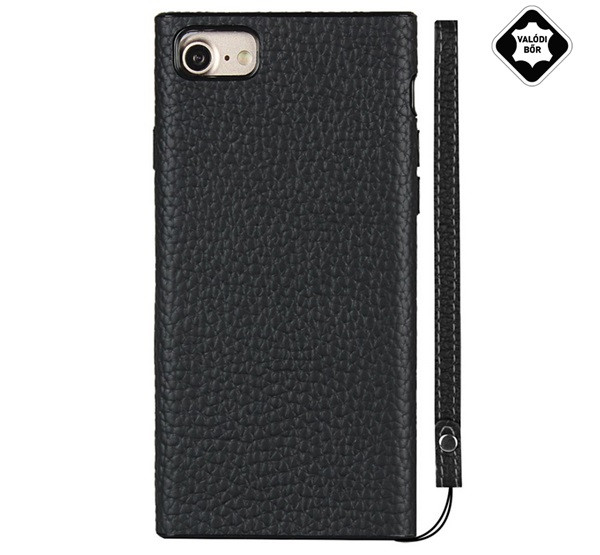 Szilikon telefonvédő (valódi bőr bevonat) FEKETE