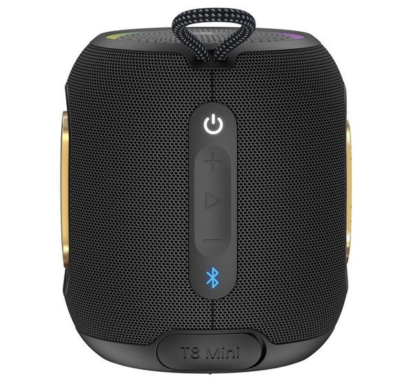 TRONSMART T8 MINI bluetooth hordozható hangszóró (v5.0, 10W, LED fény, IPX5 vízálló) FEKETE