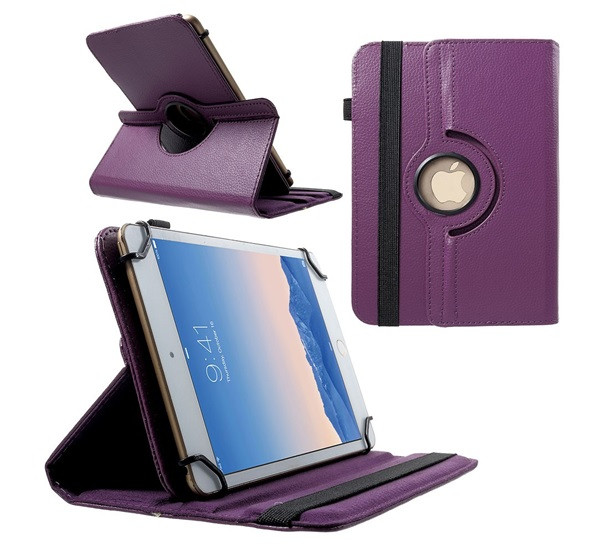 Tok álló, bőr hatású (univerzális, FLIP, asztali tartó, 360°, 9-10" méret, ceruzatartó) LILA