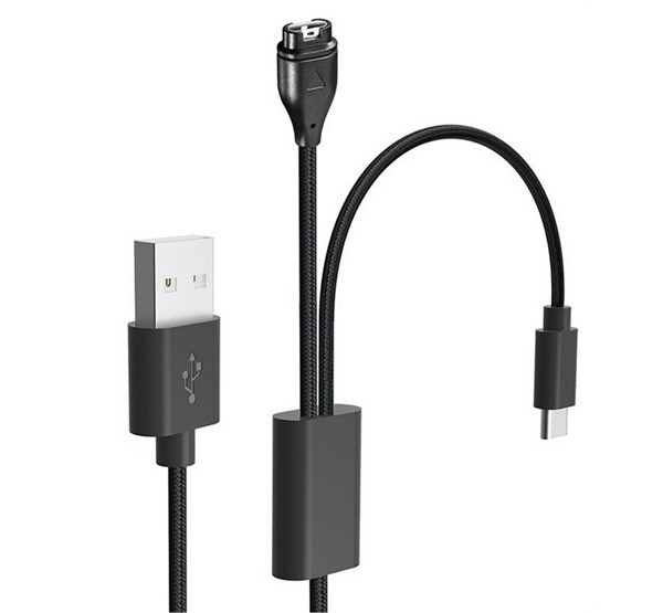 Töltőkábel 2in1 (USB - Garmin/Type-C, 115cm) FEKETE