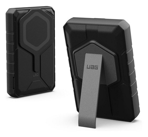 UAG RUGGED vésztöltő USB+Type-C aljzat (10000mAh, 20W, wireless, gyorstöltő, mágneses, kitámasztó) FEKETE