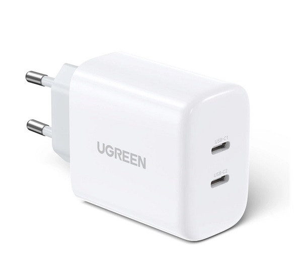 UGREEN CD243 hálózati töltő 2 Type-C aljzat (40W, PD gyorstöltő 3.0) FEHÉR