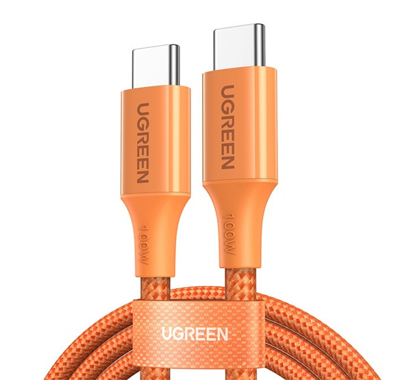 UGREEN L502 adatkábel (Type-C - Type-C, 100W, PD gyorstöltő 3.0, cipőfűző, 100cm) NARANCSSÁRGA