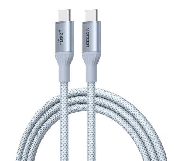UGREEN L534 adatkábel (Type-C - Type-C, 240W, PD gyorstöltő, cipőfűző, 100cm) EZÜST