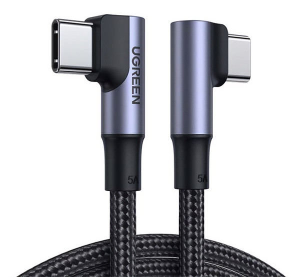 UGREEN US335 adatkábel (Type-C - Type-C, 100W, PD gyorstöltő 3.0, 90 fokos, cipőfűző, 100cm) SÖTÉTSZÜRKE