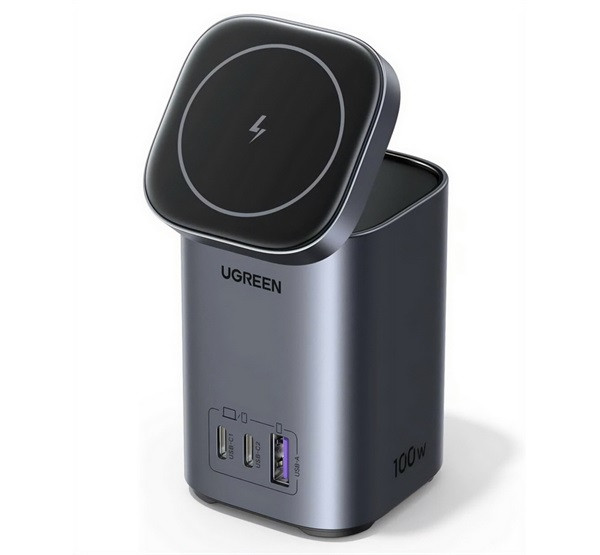 UGREEN asztali töltő 2 USB+Type-C (65W, wireless, gyorstöltő, mágneses) FEKETE