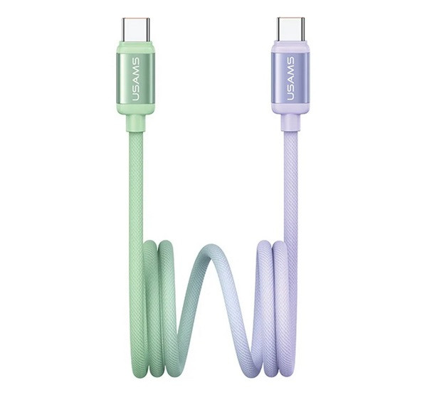 USAMS BICOLOR adatkábel (Type-C - Type-C, 60W, PD gyorstöltő, 120cm) ZÖLD/LILA
