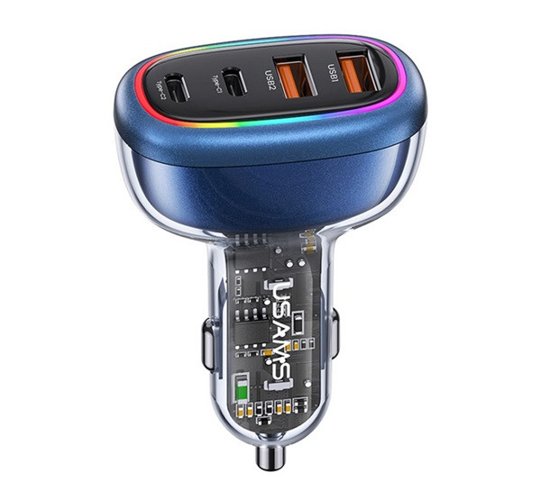USAMS C33 autós töltő 2 USB+2 Type-C aljzat (120W, PD gyorstöltő 3.0) SÖTÉTKÉK