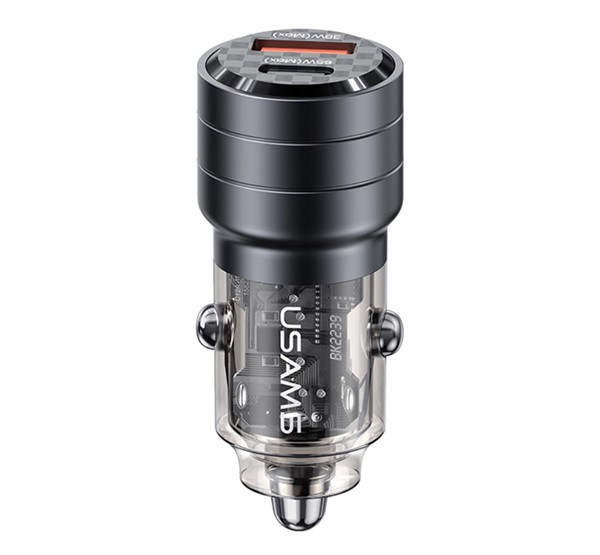 USAMS C36 autós töltő USB+Type-C aljzat (95W, PD gyorstöltő) FEKETE