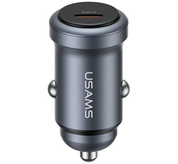 USAMS CC321 autós töltő Type-C aljzat (30W, PD gyorstöltő) SÖTÉTSZÜRKE