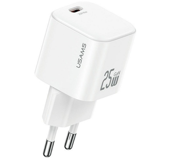 USAMS JC MINI hálózati töltő Type-C aljzat (25W, PD gyorstöltő, GaN) FEHÉR