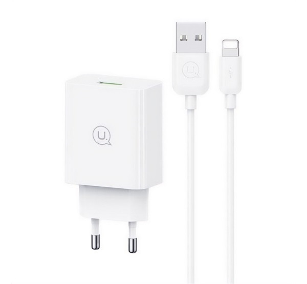 USAMS SC hálózati töltő USB aljzat (18W, PD gyorstöltő 3.0 + lightning kábel) FEHÉR