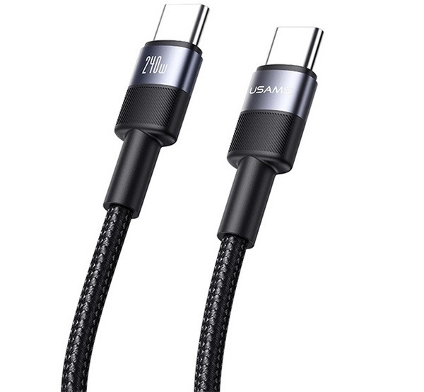 USAMS SY adatkábel (Type-C - Type-C, 240W, gyorstöltő, cipőfűző, 120cm) EZÜST