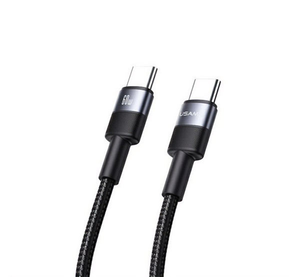 USAMS SY adatkábel (Type-C - Type-C, 60W, PD gyorstöltő, cipőfűző, 120cm) FEKETE