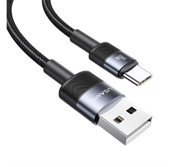 USAMS SY adatkábel (USB - Type-C, 3A, PD gyorstöltő, cipőfűző, 120cm) FEKETE