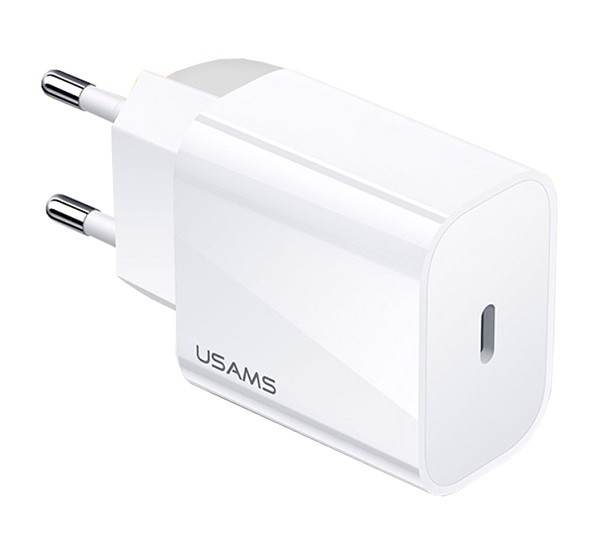 USAMS T34 hálózati töltő Type-C aljzat (20W, PD gyorstöltő) FEHÉR